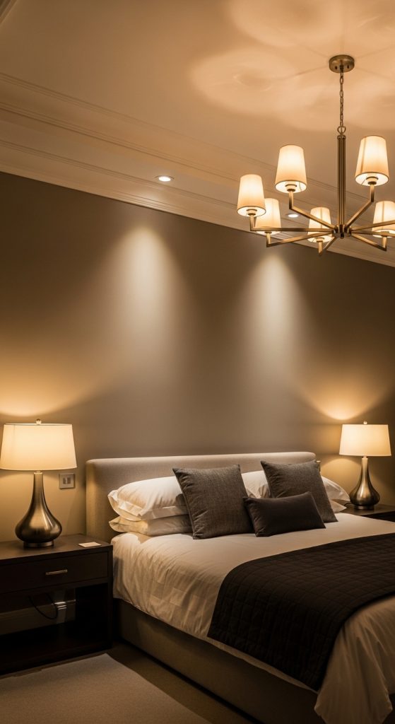 The key is to keep the lighting soft and warm so the bedroom feels calm and romantic.