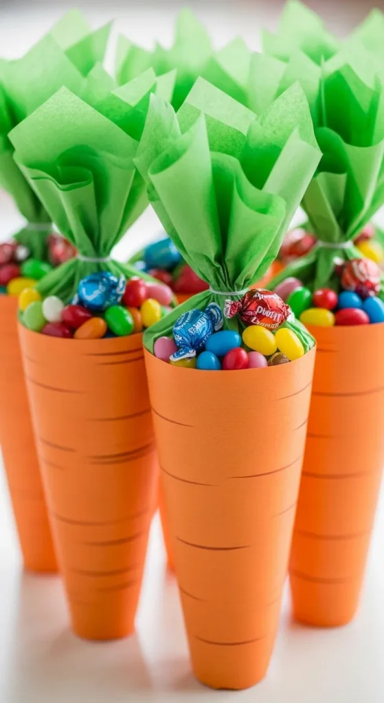 DIY Easter treat bags are cute, functional, and fast to make. Use orange paper bags or paint plain bags orange, and twist green tissue paper at the top to mimic carrot leaves. Fill them with candies, small toys, or chocolates for a delightful surprise for kids or guests.