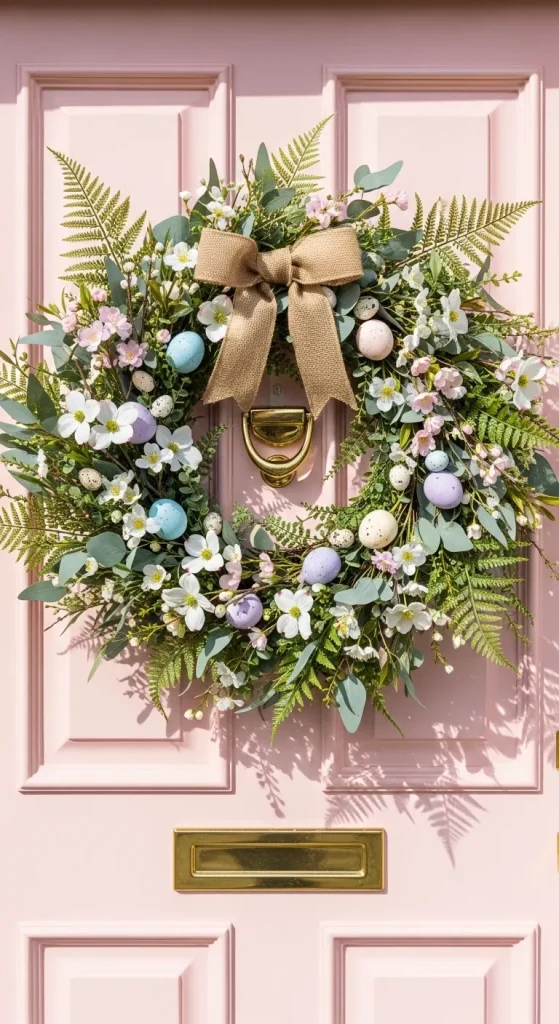 Create a welcoming Easter wreath for your front door using a foam or wire base. Attach faux flowers, greenery, and miniature eggs with hot glue. You can also add a decorative ribbon for an extra touch of elegance. This DIY wreath brings a cheerful spring vibe that greets every visitor warmly.