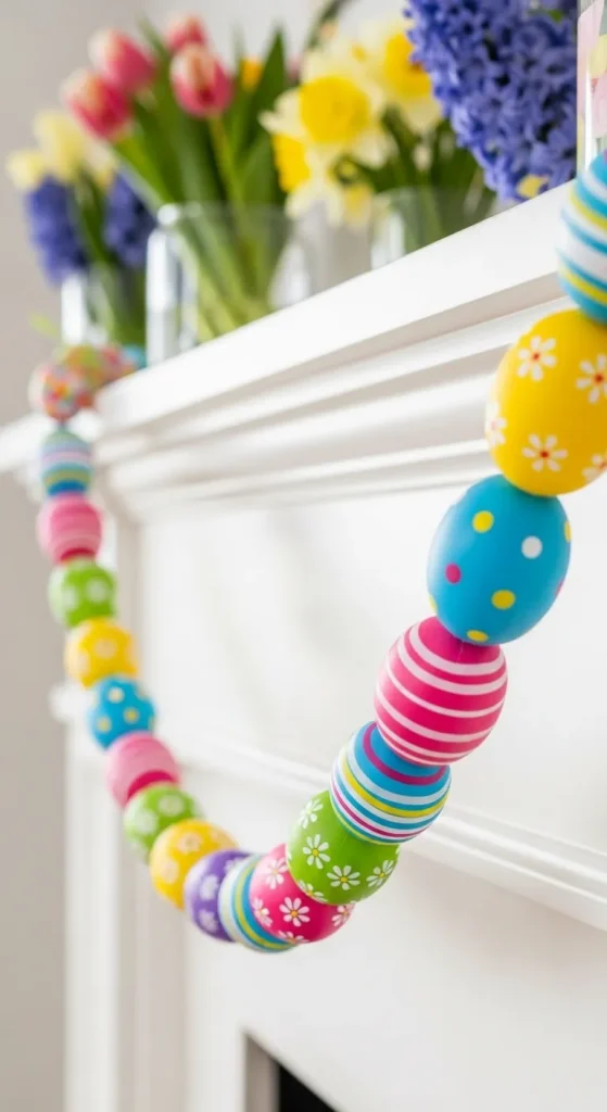 A colorful Easter egg garland can instantly uplift any room. Use plastic or wooden eggs, paint them in soft pastels, and string them together with twine or ribbon. Hang the garland across your mantel, windows, or staircase for a playful and festive touch. This is perfect for kids to get involved in crafting too.