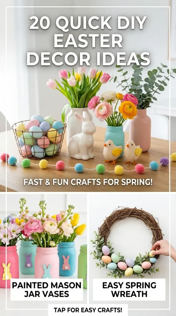 Easter is a time of joy, renewal, and creativity. Decorating your home for this festive season doesn’t have to be time-consuming or expensive. With a few simple materials and a pinch of imagination, you can transform your space into a bright, cheerful haven. Here are 20 quick DIY Easter decor ideas that are easy to make, visually stunning, and perfect for creating a Pinterest-worthy atmosphere.