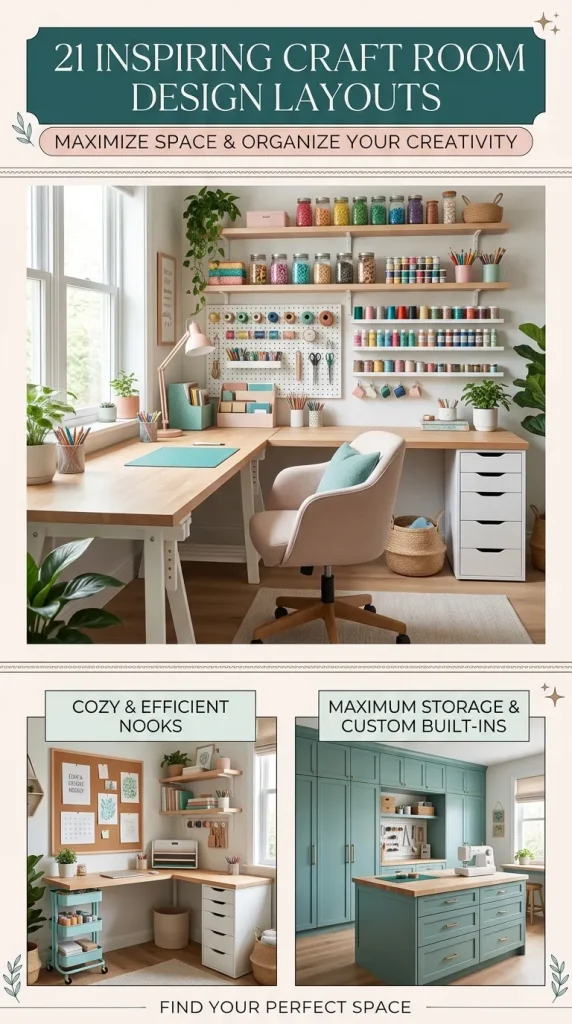 Creating a craft room is about more than just a place to store supplies—it’s about designing a space that inspires creativity and makes crafting a joy. Whether you’re into sewing, painting, scrapbooking, or mixed media, the layout of your craft room can dramatically influence your productivity and mood. Here are 21 unique and elegant craft room design layouts to spark your imagination.