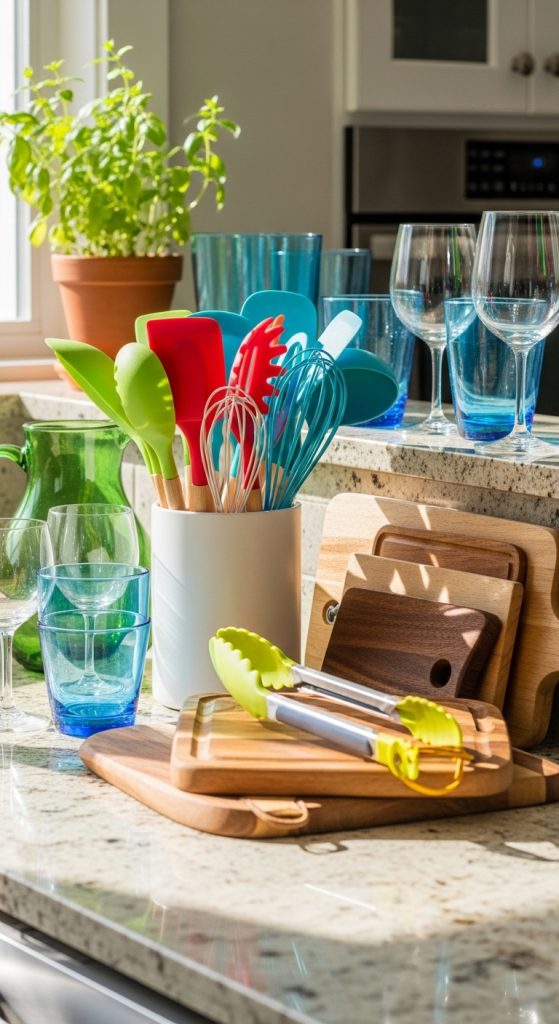 Dollar Tree is a treasure trove for kitchen basics that combine practicality and elegance. Think colorful cutting boards, utensil organizers, measuring cups, and glassware. These affordable finds help you cook efficiently and keep your kitchen neat while adding a subtle pop of style. Coordinating colors and materials can create a cohesive and inviting kitchen space.