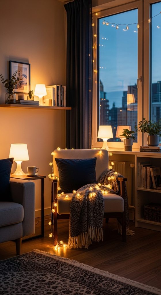 Lighting can dramatically change the mood of an apartment. Dollar Tree offers affordable options like LED string lights, small lamps, and battery-operated candles that add warmth and coziness to your living space. Layering different light sources creates ambiance and makes the apartment feel more inviting, even on a limited budget.