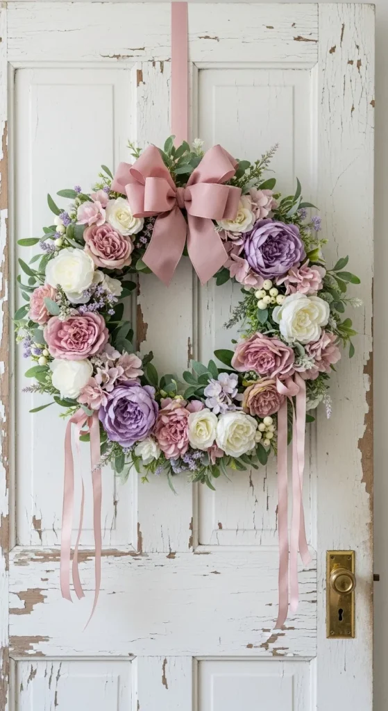 Create a stunning Easter wreath using faux flowers from Dollar Tree. Choose soft pastel colors like blush pink, lavender, and ivory. Attach the blooms to a foam wreath base and accent with silk ribbons or delicate faux pearls. Hang it on your front door or above a fireplace for an instant upscale look.