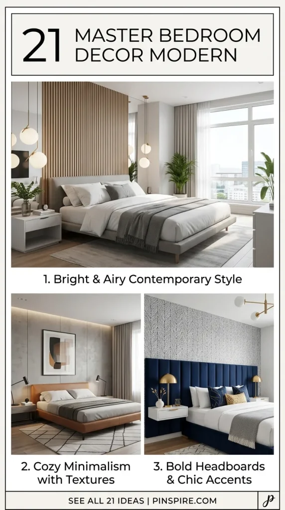 Designing a modern luxury master bedroom is all about blending comfort with elegance, creating a space that is both inviting and sophisticated. A perfect bedroom doesn’t just look stunning—it feels like a personal sanctuary. Here are twenty one luxurious ideas to transform your master bedroom into a modern masterpiece.