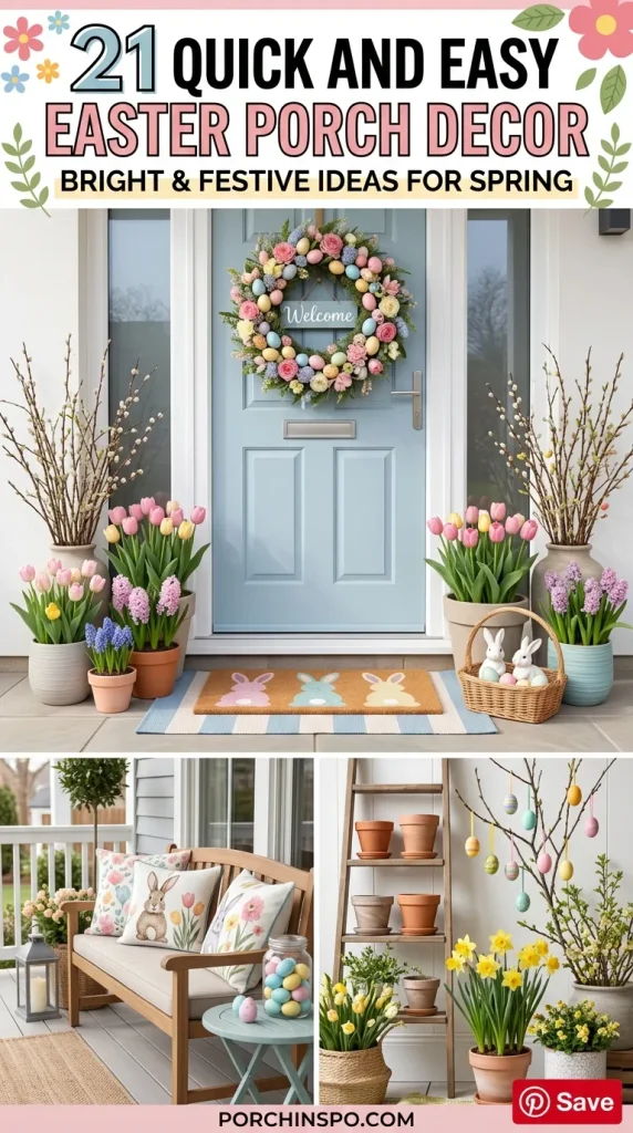 These quick and easy ideas are designed to inspire anyone looking to refresh their porch in time for Easter. Whether you prefer whimsical, playful, or elegant styles, there’s a concept here that will transform your porch into a welcoming and festive space.