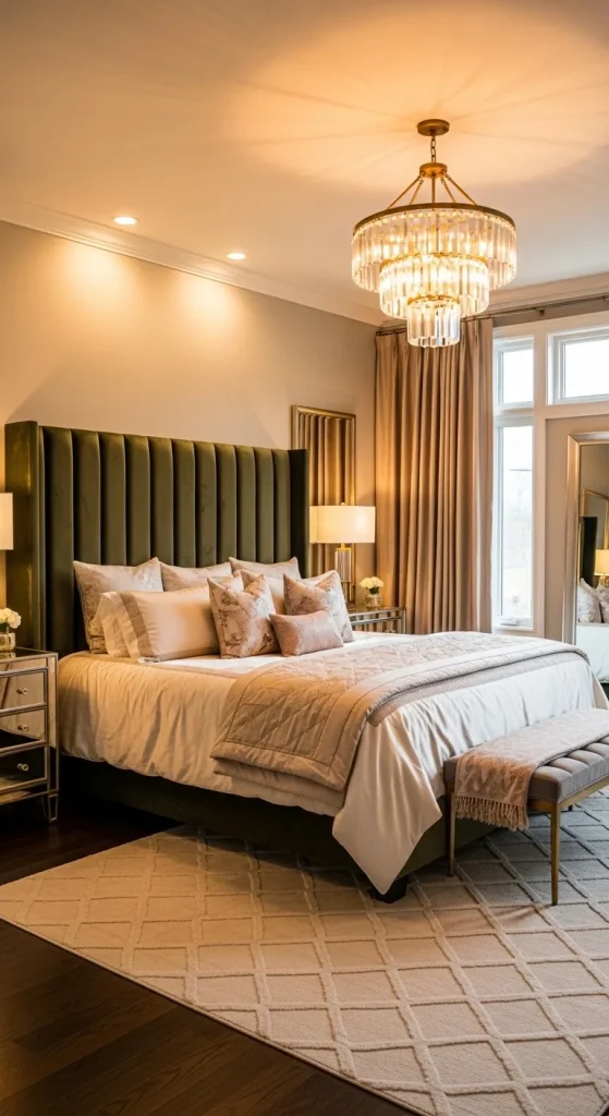 Add a plush area rug beneath the bed and keep the rest of the décor minimal to allow the velvet textures to shine. The result is a master bedroom that feels glamorous yet incredibly cozy.